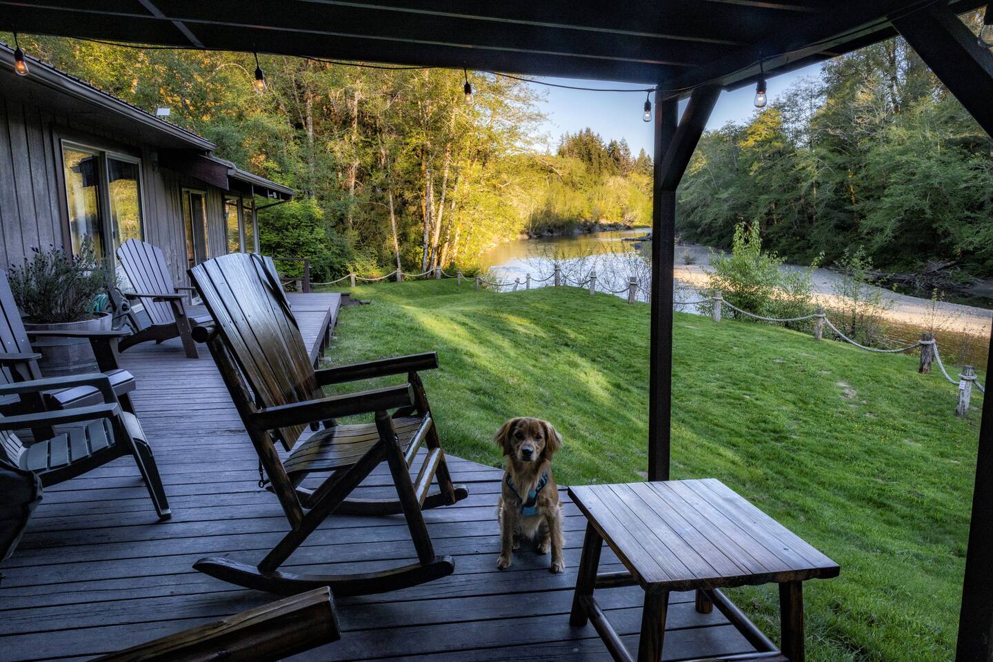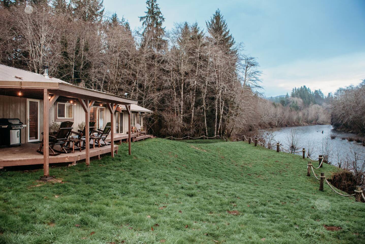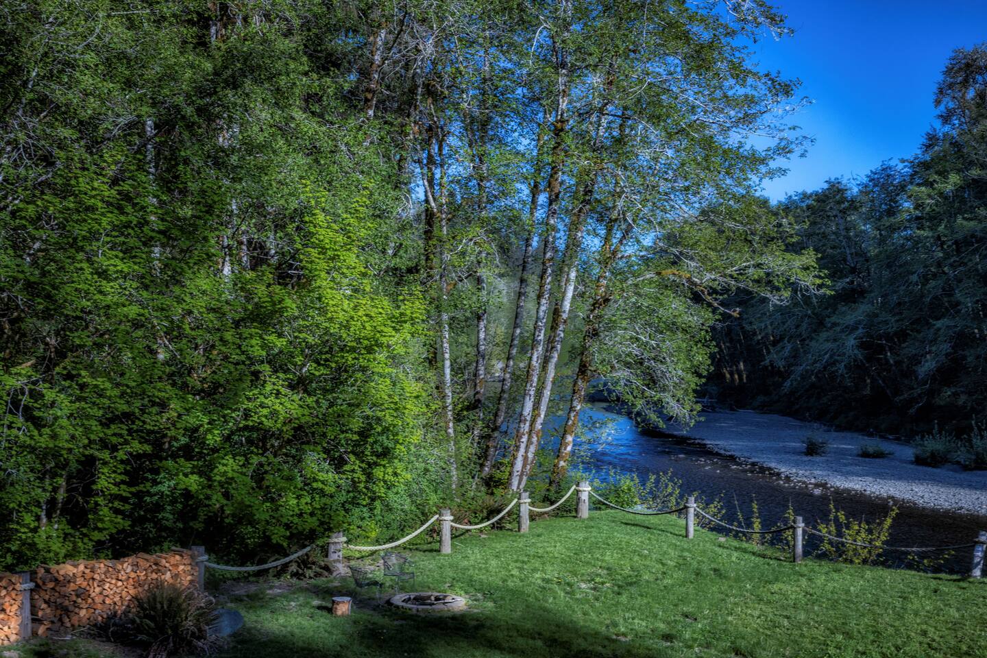 Key Amenities 🏞️ Spectacular river views from the living room ⚡ Generac whole-house backup generator for uninterrupted comfort 🏓 Pool / ping pong table 🔥 Pellet-burning stove for cozy evenings 🦅 Frequent wildlife sightings, including eagles and elk Nestled beside the Bogachiel River, our property offers an unparalleled connection with the great outdoors. The centerpiece of our space is the stunning view from the living room. This vista down the river will take your breath away and leave you feeling truly in touch with the beauty of nature. One of our newest and most-loved additions is the private hot tub overlooking the river. Whether you’re soaking after a long day exploring Olympic National Park or enjoying a quiet, misty morning, the hot tub offers a front-row seat to the sights and sounds of the Bogachiel. The Covana Oasis cover allows you to relax comfortably in any weather—rain or shine. With four bedrooms, River's Edge can comfortably accommodate up to 10 guests. Three of the bedrooms feature king-size beds, ensuring a restful night's sleep, while the fourth bedroom boasts twin bunk beds, perfect for families or groups. For extra flexibility, the living room is equipped with a pullout sleeper, adding space for even more guests. In addition to the comfortable seating and the mesmerizing river view, the living room features a poker table, providing an ideal setting for entertaining and games. Adjacent to the living room, there's a separate nook featuring a dining table that can be easily transformed into either a ping pong or pool table. This multifunctional space ensures hours of fun and extra dining space when needed. On cooler evenings, the living room's pellet stove adds warmth and ambiance, allowing you to relax by the open flame as you gaze out at the river. Our fully stocked kitchen provides everything you need to prepare a delicious meal during your stay, whether you're cooking for a family or a larger group. For those cozy Forks rain days, we offer a curated selection of books so you can unplug, unwind, and enjoy the peaceful surroundings. Outdoor enthusiasts will love the private river access—step right off the back porch and into one of the Olympic Peninsula’s most renowned salmon and steelhead rivers for a truly unforgettable fishing experience. And for added peace of mind, River’s Edge is equipped with a 26 kW Generac whole-house backup generator. Power outages can occur in Forks, particularly during winter storms, but here you’ll enjoy uninterrupted heat, lights, hot water, and Wi-Fi—an uncommon but highly valued feature among vacation rentals in the area. River's Edge is more than just a place to stay—it's a retreat where nature, comfort, and unforgettable moments come together. We can’t wait to welcome you to the river and help you create lasting memories in one of the most beautiful corners of Washington.