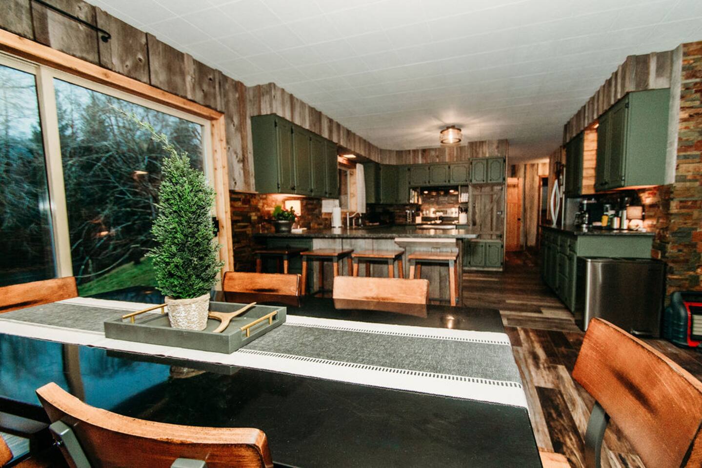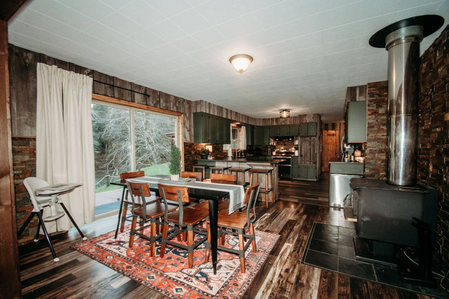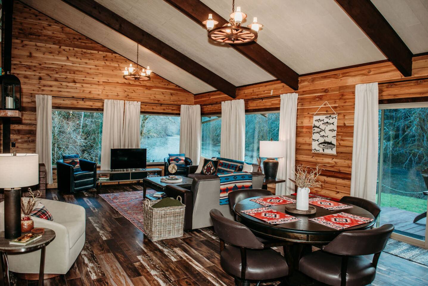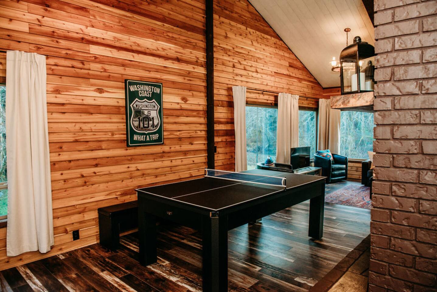 Key Amenities 🏞️ Spectacular river views from the living room ⚡ Generac whole-house backup generator for uninterrupted comfort 🏓 Pool / ping pong table 🔥 Pellet-burning stove for cozy evenings 🦅 Frequent wildlife sightings, including eagles and elk Nestled beside the Bogachiel River, our property offers an unparalleled connection with the great outdoors. The centerpiece of our space is the stunning view from the living room. This vista down the river will take your breath away and leave you feeling truly in touch with the beauty of nature. One of our newest and most-loved additions is the private hot tub overlooking the river. Whether you’re soaking after a long day exploring Olympic National Park or enjoying a quiet, misty morning, the hot tub offers a front-row seat to the sights and sounds of the Bogachiel. The Covana Oasis cover allows you to relax comfortably in any weather—rain or shine. With four bedrooms, River's Edge can comfortably accommodate up to 10 guests. Three of the bedrooms feature king-size beds, ensuring a restful night's sleep, while the fourth bedroom boasts twin bunk beds, perfect for families or groups. For extra flexibility, the living room is equipped with a pullout sleeper, adding space for even more guests. In addition to the comfortable seating and the mesmerizing river view, the living room features a poker table, providing an ideal setting for entertaining and games. Adjacent to the living room, there's a separate nook featuring a dining table that can be easily transformed into either a ping pong or pool table. This multifunctional space ensures hours of fun and extra dining space when needed. On cooler evenings, the living room's pellet stove adds warmth and ambiance, allowing you to relax by the open flame as you gaze out at the river. Our fully stocked kitchen provides everything you need to prepare a delicious meal during your stay, whether you're cooking for a family or a larger group. For those cozy Forks rain days, we offer a curated selection of books so you can unplug, unwind, and enjoy the peaceful surroundings. Outdoor enthusiasts will love the private river access—step right off the back porch and into one of the Olympic Peninsula’s most renowned salmon and steelhead rivers for a truly unforgettable fishing experience. And for added peace of mind, River’s Edge is equipped with a 26 kW Generac whole-house backup generator. Power outages can occur in Forks, particularly during winter storms, but here you’ll enjoy uninterrupted heat, lights, hot water, and Wi-Fi—an uncommon but highly valued feature among vacation rentals in the area. River's Edge is more than just a place to stay—it's a retreat where nature, comfort, and unforgettable moments come together. We can’t wait to welcome you to the river and help you create lasting memories in one of the most beautiful corners of Washington.